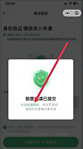 ,补充资料页面的全部点击跳过,点击提交等待30秒出额度。